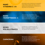 Água, Glicerol, Palmitato De Isopropila, Dióxido De Silício, Trealose, Polietilenoglicol-12 Dimeticona, Óleo De Girassol, Fenoxietanol, Polipropilenoglicol-5-Polietilenoglicol-20 Éter De Álcool Cetílico, Goma Xantana, Ácido Poliacrílico, Colesterol, Ácido Poliglutâmico, Sesquicaprilato De Xilitila, Monoestearato De Glicerila, Lecitina, Caprililglicol, Hidróxido De Sódio, Isopropanolamina, Benzotriazolil Dodecil P-Cresol, Carnosina, Edetato Dissódico, Decilenoglicol, Lecitina, Cera De Euphorbia Cerifera, Fitantriol, Adipato De Dibutila, Tetra-Di-T-Butil Hidróxi-Hidrocinamato De Pentaeritritila, Poloxaleno, Ácido Ascórbico, Diacetato De Dipeptídeo Diaminobutiroil Benzilamida, Bacuchiol, Tocoferol.